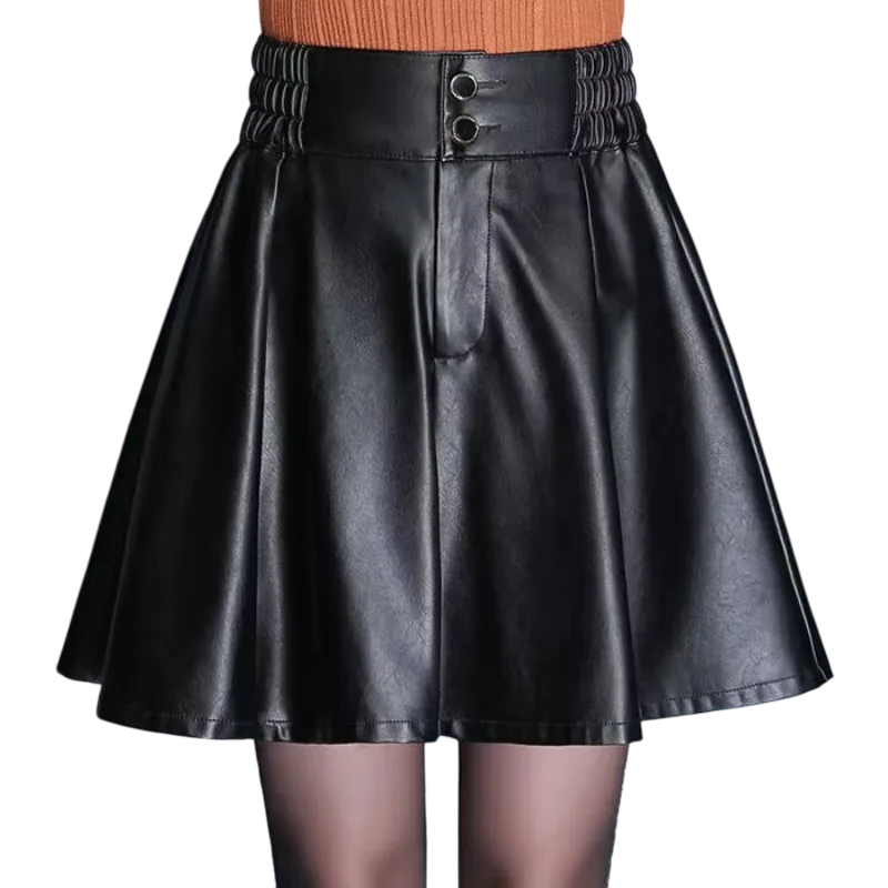 Modern ve feminen tarzı bir arada sunan bu siyah deri görünümlü etek, yüksek bel tasarımıyla vücut hatlarını ön plana çıkarır. Bel kısmındaki lastikli detaylar hem şıklık katar hem de konforlu kullanım sağlar. Günlük kombinlerde kazak veya gömleklerle, gece şıklığında ise topuklu ayakkabı ve bluzlarla kolayca tamamlanabilir.
