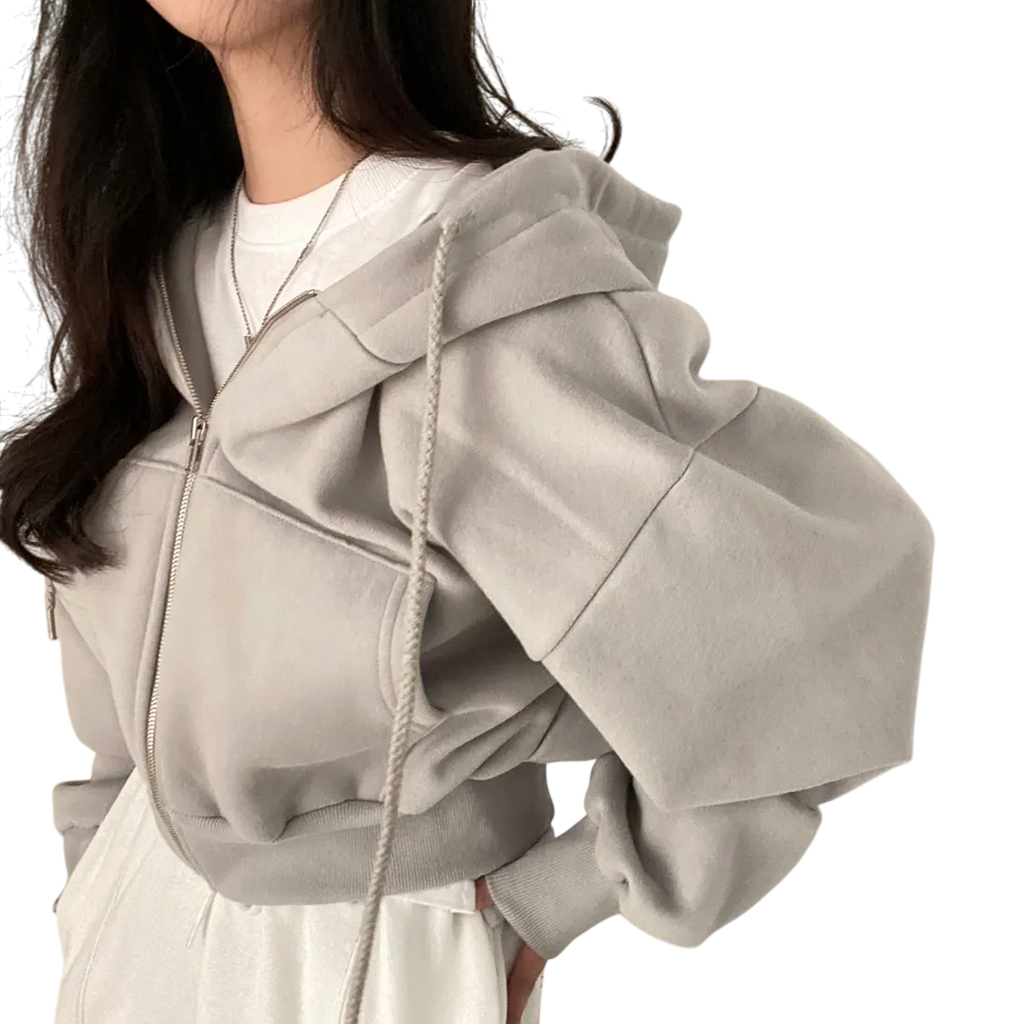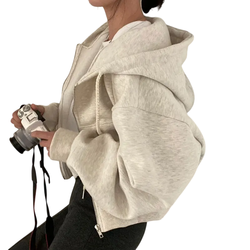 Rahatlığı ve sokak stilini bir araya getiren gri crop kapüşonlu sweatshirt, günlük kombinlerin vazgeçilmezi olacak. Fermuarlı tasarımı sayesinde kolay kullanım sağlar, yumuşak dokulu kumaşı ise gün boyu konfor sunar. Oversize kol detayları ve modern kısa kesimi ile spor şıklığı tamamlar.